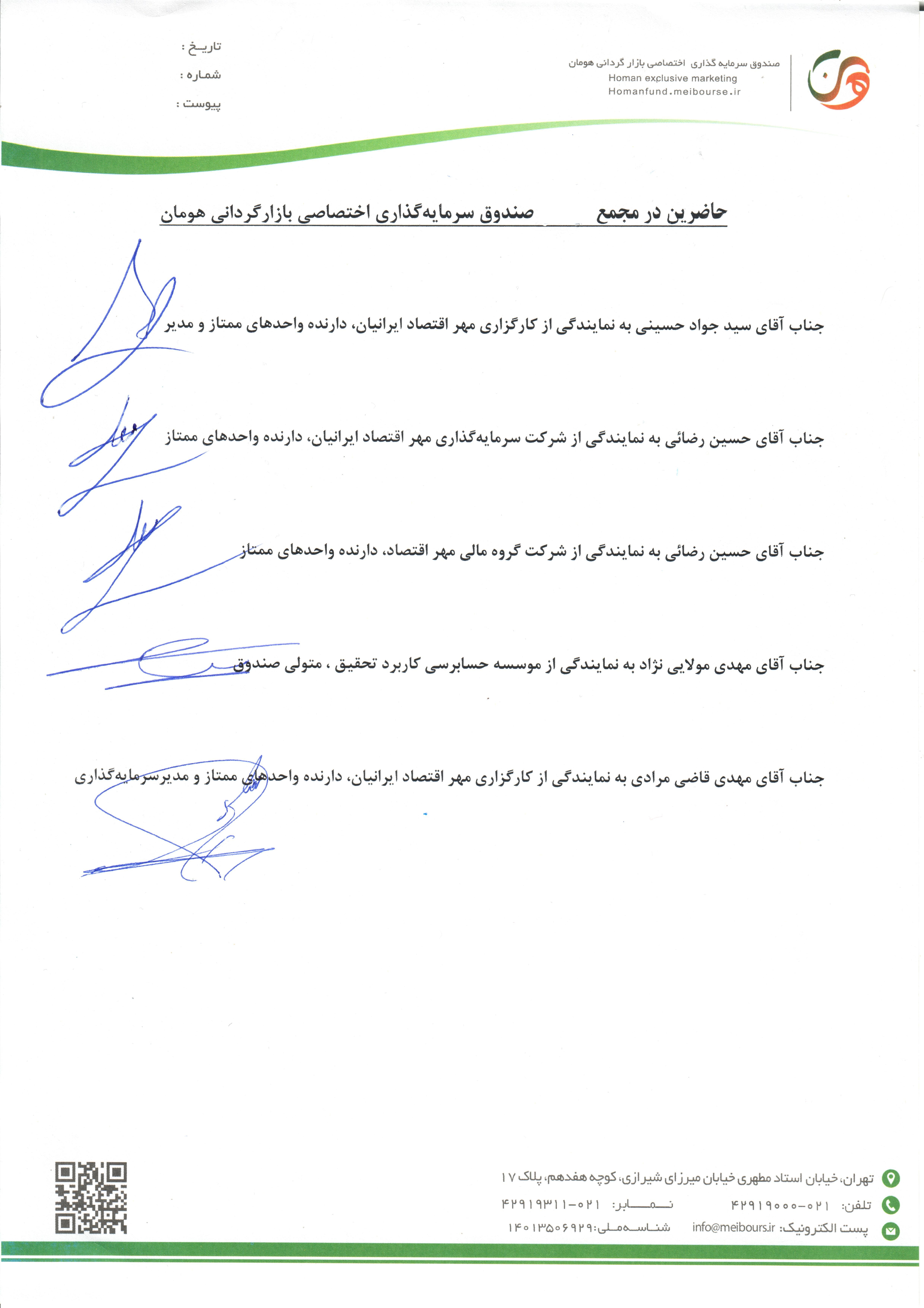 حاضرین در مجمع صندوق مورخ ۱۳مهر۱۴۰۴